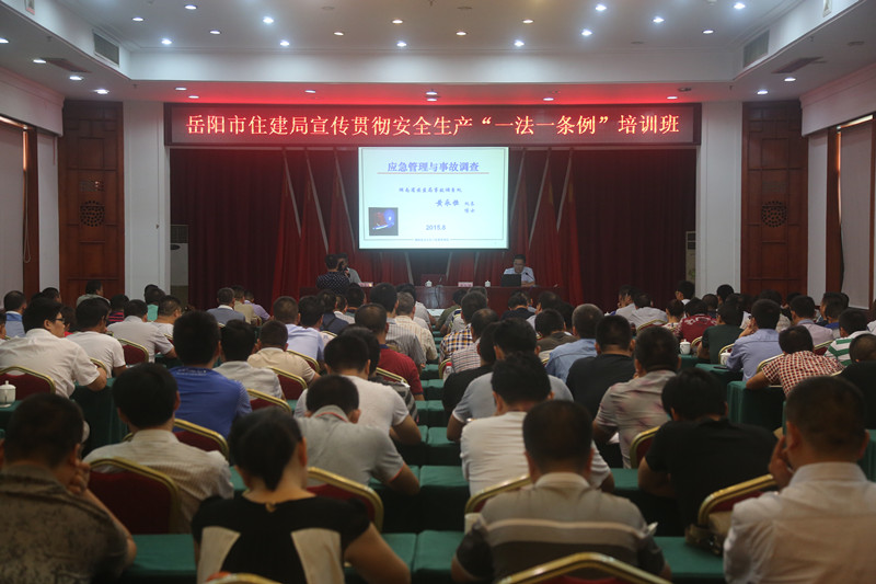 為加強(qiáng)全市建筑工程施工安全生產(chǎn)管理,8月24日,市住建局開(kāi)展全市建筑施工領(lǐng)域《中華人民共和國(guó)安全生產(chǎn)法》、《湖南省安全生產(chǎn)條例》集中培訓(xùn)活動(dòng)。全市二級(jí)資質(zhì)以上施工企業(yè)主要負(fù)責(zé)人、城區(qū)在建建筑工程項(xiàng)目業(yè)主、施工單位項(xiàng)目經(jīng)理、監(jiān)理單位項(xiàng)目總監(jiān)以及市住建局相關(guān)科室、局屬單位負(fù)責(zé)人共210人參加學(xué)習(xí)。省安監(jiān)局專(zhuān)家、事故調(diào)查處處長(zhǎng)黃永恒博士現(xiàn)場(chǎng)授課。